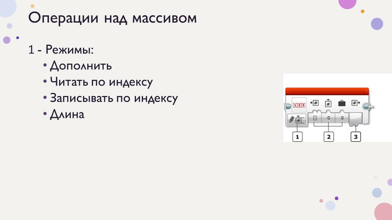 В режимах добавить и записать по индексу (верхние блоки) значение является входящим параметром, может быть введено на прямую в ячейку блока или через шину данных числового или логического типа. В режиме чтение по индексу – исходящий. Так как содержит в себе данные из ячейки с указанным индексом